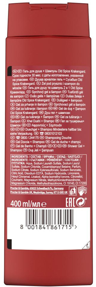 Old Spice Шампунь-гель для душа «Krakengard»В данный момент этот товар отсутствует в продаже. Возможно, у нас найдется аналогичный или похожий товар здесь. Первое правило Кракена (если ты не в курсе, это легендарное морское чудовище, за которым всегда следуют целые стаи рыб): никому не рассказывать об источнике своего прекрасного запаха. Аромат мужского геля для душа и шампуня 2в1 Old Spice (Олд Спайс) Krakengard настолько магнетичен, что может с лёгкостью привлечь нервных акул, прекрасных дам и вообще организовать вокруг тебя толпу преданных последователей. Этот гель для душа с классическим ароматом с нотами свежих трав, цитрусов и ценных пород дерева — твой идеальный выбор, если ты хочешь источать свежесть и уверенность в себе в любой незнакомой или непонятной ситуации. Он борется с неприятными запахами, обеспечивая железобетонную стойкость аромата на весь день! Зарядись энергией Old Spice с самого утра — попробуй гель для душа и шампунь 2в1 Krakengard в XL упаковке 400 мл, а затем используй дезодорант из этой же коллекции в форме стика или спрея, и ты будешь окружен аурой мужественности настоящего покорителя водной стихии. |