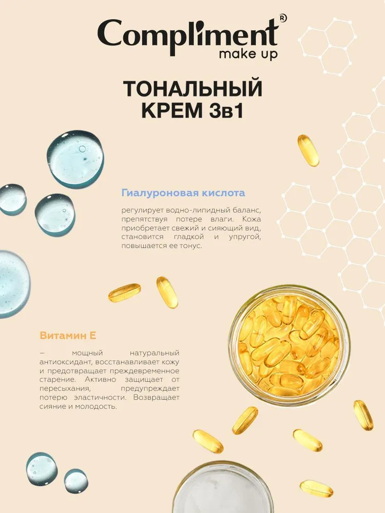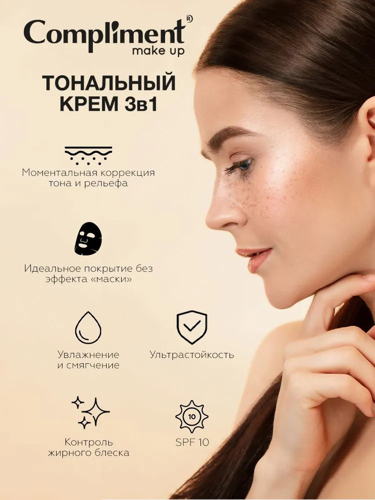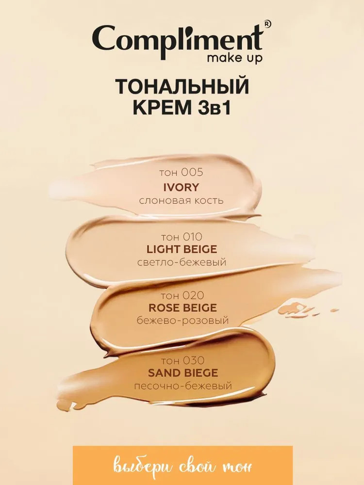 Compliment Тональный крем 3 в 1, тон 005 Слоновая кость
