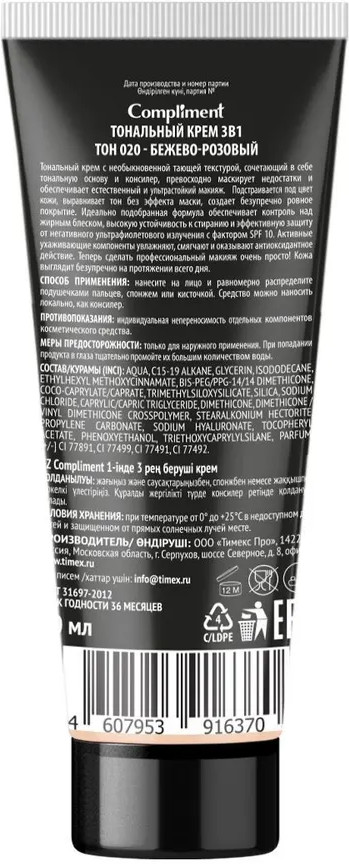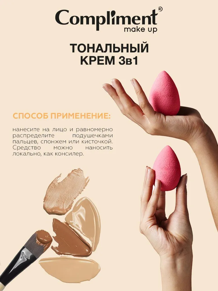 Compliment Тональный крем 3 в 1, тон 020 Бежево-розовый
