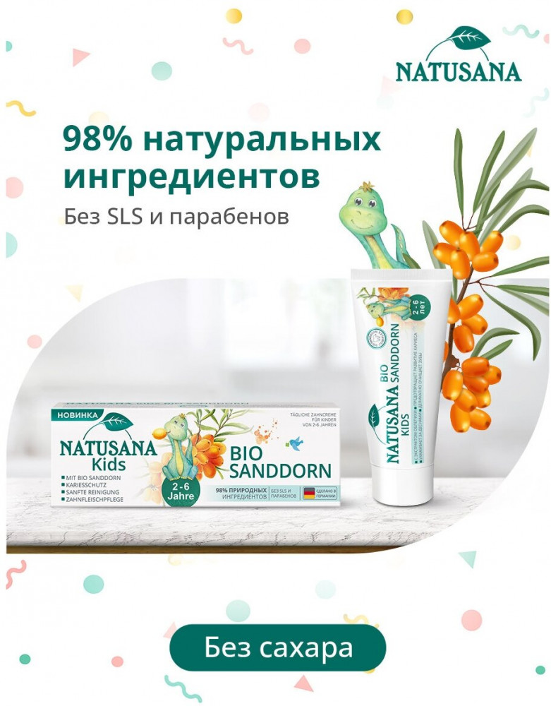 Natusana Зубная паста детская «Bio sanddorn»В данный момент этот товар отсутствует в продаже. Возможно, у нас найдется аналогичный или похожий товар здесь. Детская зубная паста «Natusana kids bio sanddorn» 2-6 c экстрактом облепихи укрепляет десны и оказывает противовоспалительное действие. Уникальная формула с кальцием и активными компонентами защищает от кариеса и насыщает детские зубы минералами. Мягкие абразивы деликатно и эффективно удаляют бактериальный зубной налет и полируют эмаль. |