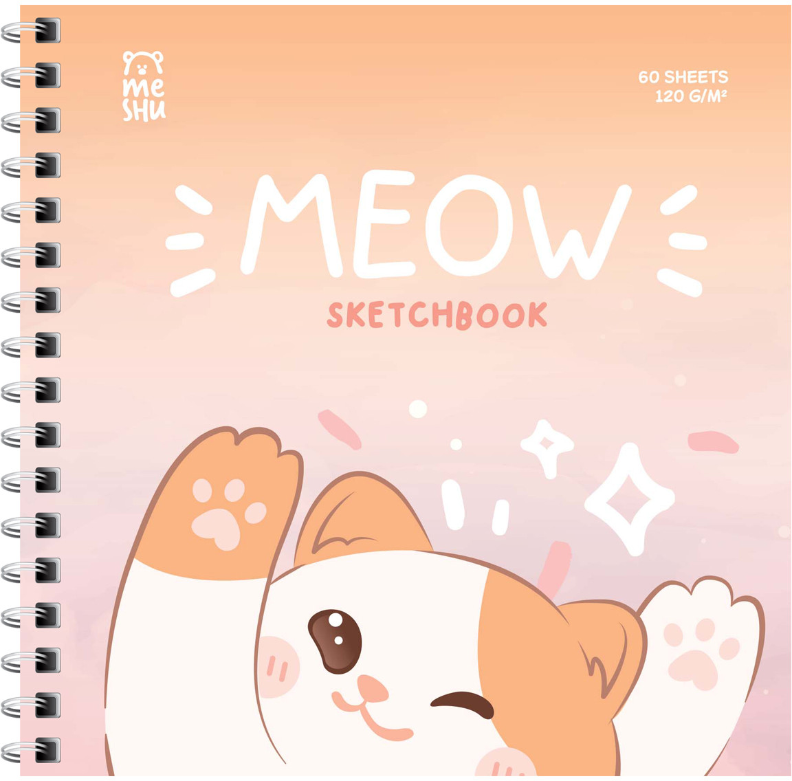 Скетчбук «Meow» оценят любители творчества. Изделие размером 15 × 15 см подойдёт для рисования цветными и акварельными карандашами, а также другими графическими материалами. Внутренний блок — 60 белых листов из офсетной бумаги плотностью 120 г/м².