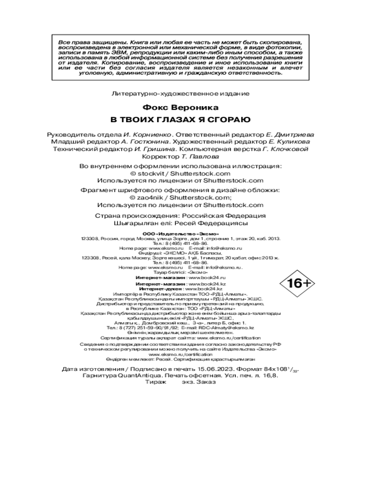 💳 Оплатить за товар можно при получении 🇰🇿 Есть бесплатная доставка по Казахстану от 1 дня 🎁 Копите бонусы с каждой покупки Серия: Все грани любви. Романы Вероники Фокс Книги Вероники Фокс — это чувственные истории о первой любви, которые задевают за живое, заставляют сопереживать героям и радоваться за них, как за своих давних знакомых. |
