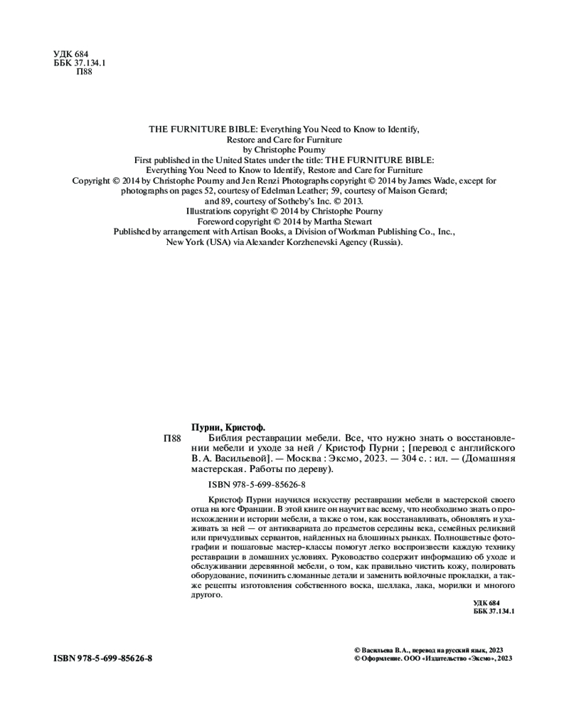| Библия реставрации мебели. Все, что нужно знать о восстановлении мебели и уходе за ней Кристоф Пурни