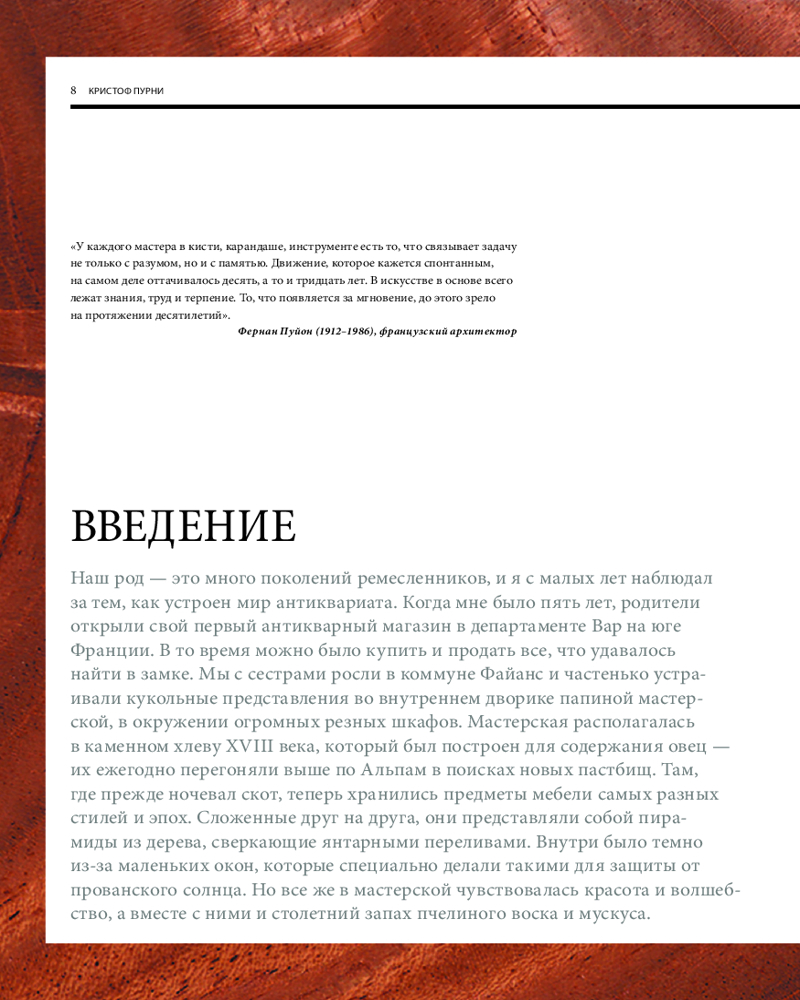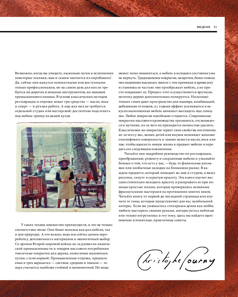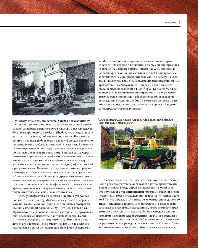 Глава о техниках содержит подробные рекомендации и пошаговые инструкции, касающиеся не только древесины, но и металлов и других материалов, которые используются для украшения или из практических соображений.