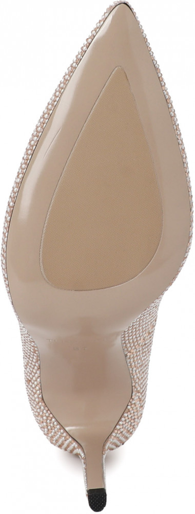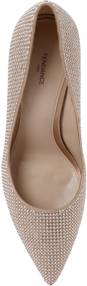 Верх модели выполнен из легкого и мягкого текстиля, он эластичный, прекрасно пропускает воздух, не требует особого ухода. Материал украшен россыпью однотонных стразов и матовых деталей, которые будут эффектно переливаться при движении. Заостренный мысок подчеркнет изящество ваших стоп. Подкладка и стелька мягкие, тонкие, приятные на ощупь из натуральной кожи козы. Натуральная кожа позволяет ноге дышать и меньше потеть. Она поддерживает здоровый микроклимат обуви, уменьшается риск появления мозолей. Туфли безопасно носить на голую ногу. Резиновая подошва не промокает, устойчива к истиранию, неприхотлива в уходе. Изящная тонкая шпилька высотой 10,5 см обтянута текстилем в тон основы, что создает цельный силуэт обуви и визуально удлиняет ногу. Модель подойдет женщинам невысокого и среднего роста. Эти туфли относятся к стилю гламур. Почувствуйте комфорт с вашими новыми туфлями Tendance.