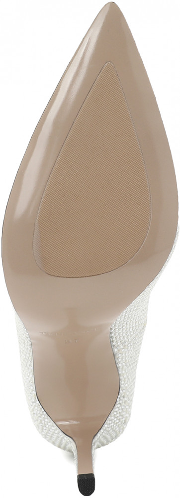 Верх модели выполнен из легкого и мягкого текстиля, он эластичный, прекрасно пропускает воздух, не требует особого ухода. Материал украшен россыпью однотонных стразов и матовых деталей, которые будут эффектно переливаться при движении. Заостренный мысок подчеркнет изящество ваших стоп. Подкладка и стелька мягкие, тонкие, приятные на ощупь из натуральной кожи козы. Натуральная кожа позволяет ноге дышать и меньше потеть. Она поддерживает здоровый микроклимат обуви, уменьшается риск появления мозолей. Туфли безопасно носить на голую ногу. Резиновая подошва не промокает, устойчива к истиранию, неприхотлива в уходе. Изящная тонкая шпилька высотой 10,5 см обтянута текстилем в тон основы, что создает цельный силуэт обуви и визуально удлиняет ногу. Модель подойдет женщинам невысокого и среднего роста. Эти туфли относятся к стилю гламур. Почувствуйте комфорт с вашими новыми туфлями Tendance.