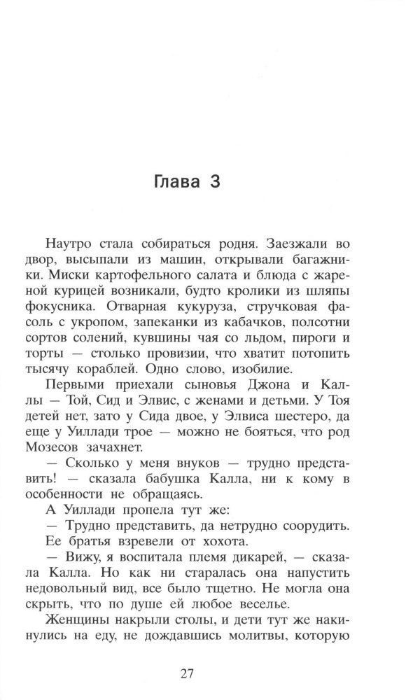 Книга похожа на Жареные зеленые помидоры, но Фэнни Флэгг гораздо талантливее Дженни Вингфилд - здесь есть некоторые недочеты и в сюжете, и в поведении героев. Да и в целом, книга не добрая, а довольно грустная. Хотя ради прекрасной атмосферы американского юга прочитать стоит.