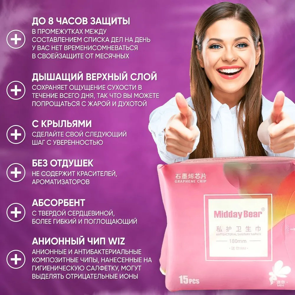 💳 Оплатить за товар можно при получении 🇰🇿 Есть бесплатная доставка по Казахстану от 1 дня 🎁 Копите бонусы с каждой покупки Женские прокладки обладают высокой абсорбирующей способностью, обеспечивая надежную защиту и комфорт во время менструации. Их инновационная конструкция с анионовым чипом помогает бороться с неприятным запахом, снижая его до минимума и поддерживая естественную женскую микрофлору. «Midday Bear» представляет прокладки, произведенные с использованием высококачественных материалов, которые обеспечивают комфортную и безопасную использование. Гипоаллергенная основа прокладок предотвращает раздражение и аллергические реакции, делая их подходящими даже для самой чувствительной кожи. В результате, прокладки являются надежным выбором для женщин, стремящихся к высокому качеству, безопасности и поддержанию здоровья своей интимной зоны. Позвольте себе комфортное и защищенное чувство во время месячных с прокладками «Midday Bear». |