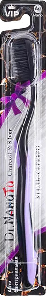 Dr.NanoTo Зубная щётка с древесным углем и наночастицами серебраВ данный момент этот товар отсутствует в продаже. Возможно, у нас найдется аналогичный или похожий товар здесь. Зубная щетка Dr.NanoTo с частицами серебра и угля имеет два уровня щетинок из полиэтилентерефталата, который не впитывает в себя пасту и воду. Первый ряд закругленных щетинок великолепно полирует эмаль, а второй ряд, тонких и удлиненных щетинок, отлично очищает все труднодоступные места, межзубные промежутки и участки между зубами и десной. Ионы серебра убивают 99.9% кишечной палочки (Escherichia coli) и 99.9% золотистого стафилококка (Staphylococcus aureus). В щетках Dr.NanoTo наночастицы серебра вплавлены в щетинки, а не нанесены на поверхность напылением. Комбинированный эффект от одновременного использования активированного угля и наночастиц серебра значительно усиливает гигиенические и антибактериальные свойства зубной щетки. |