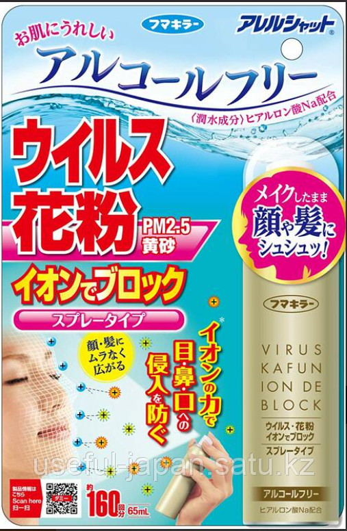 В данный момент этот товар отсутствует в продаже. Возможно, у нас найдется аналогичный или похожий товар здесь. Virus Kafun Ion de Block Спрей от вирусов и аллергенов на основе силы ионов, с добавлением гиалуроновой кислоты на 160 применений для всей семьи!