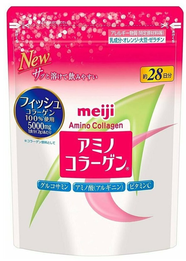 Meiji Amino Collagen выпускается в более насыщенном виде. В одной упаковке содержится 5000 мг пептида коллагена.