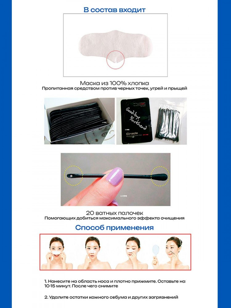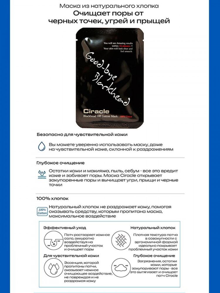Ciracle Набор масок для удаления черных точек «Blackhead Off Cotton Mask»+398 чистая кожа без шелушения без покраснения долго хватает