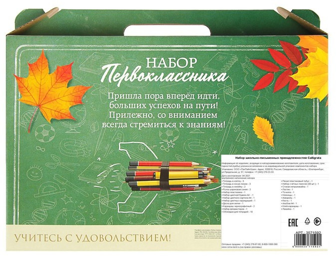 Calligrata Набор первоклассника-25% +226 комплектация упаковка плотный картон яркий дизайн