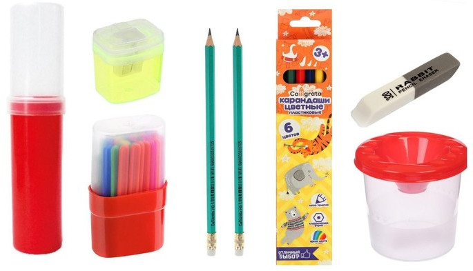 Хороший набор. Для подарка, первоклашке, отлично! Упаковано хорошо, в красивом, ярком картонном чемоданчике! Спасибо!