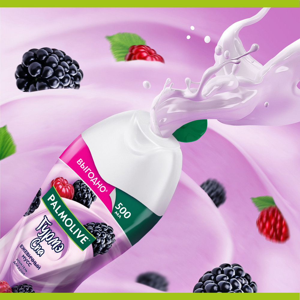Palmolive Крем-гель для душа «Ежевичный Мусс»-20% +80