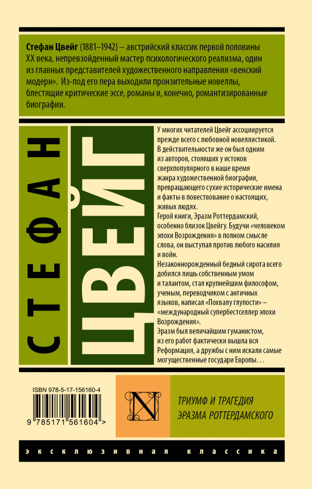 Серия: Эксклюзивная классика У многих читателей Цвейг ассоциируется прежде всего с любовной новеллистикой. В действительности же он был одним из авторов, стоявших у истоков сверхпопулярного в наше время жанра художественной биографии, превращающего сухие исторические имена и факты в повествование о настоящих, живых людях. |