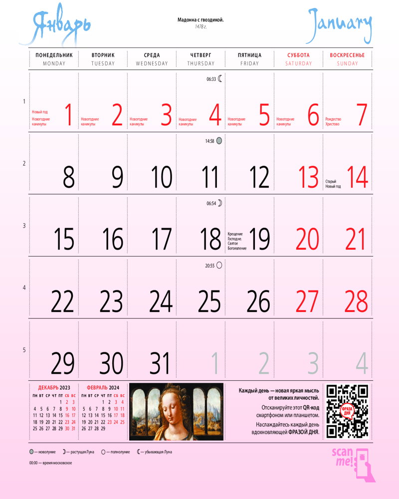 Календарь настенный на 2024 год «Леонардо да Винчи»В данный момент этот товар отсутствует в продаже. Возможно, у нас найдется аналогичный или похожий товар здесь. Серия: Календари настенные 2024 (300×300) Густав Климт (1862–1918) — один из самых знаменитых и значительных художников модерна — легко усвоил уроки символизма, импрессионизма, пуантилизма, фовизма, кубизма, но всегда оставался верен только себе: менялась его художественная манера, но неизменной оставалась творческая свобода. Высокое качество полиграфического исполнения прекрасно дополняет репродукции шедевров живописи, что непременно будет по достоинству оценено людьми с хорошим вкусом. |