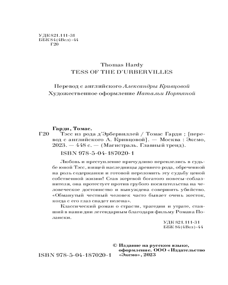 Тэсс из рода д'Эрбервиллей-20% +89 обложка страницы издание сюжет