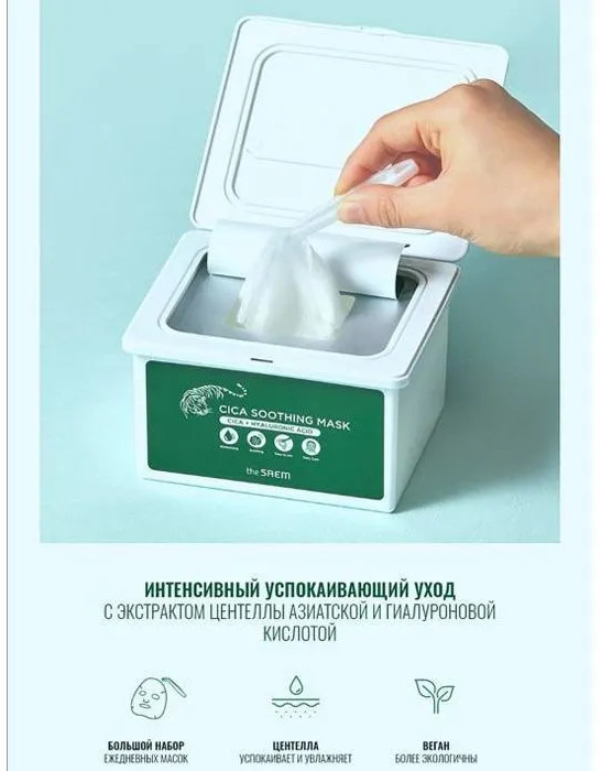The Saem Набор масок тканевых с экстрактом центеллы азиатскойудобная упаковка освежающий эффект смягчает кожу тонкая ткань водянистая эссенция слабое увлажнение В данный момент этот товар отсутствует в продаже. Возможно, у нас найдется аналогичный или похожий товар здесь. Набор из 30 тканевых одноразовых масок находится в пластиковой коробке с плотно прилегающей крышкой. За счет этого маски не высыхают в течение длительного времени.Так же под крышкой находится пластиковый пинцет для гигиеничного извлечения масок из коробки. |