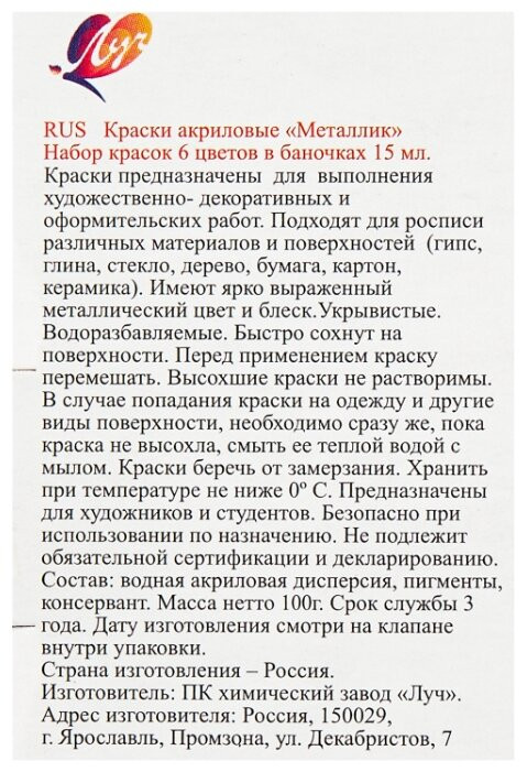 Чуть вдохновения, капля фантазии и разнообразие товаров для творчества из этого раздела позволят воплотить в жизнь самые смелые креативные идеи. Краски акриловые «Металлик», 6 цветов отлично подойдет для гармоничного развития творческих способностей вашего малыша и организации увлекательного совместного досуга. Творите, экспериментируйте и украшайте свой быт оригинальными вещицами, сделанными своими руками.