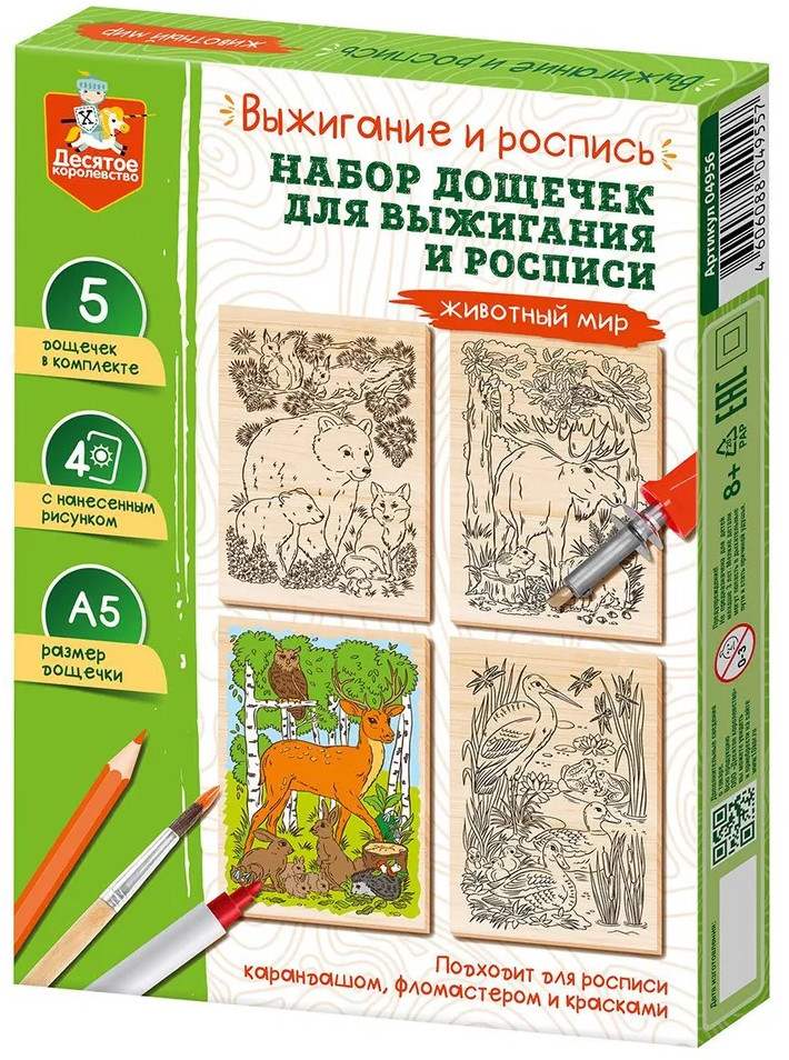 Десятое королевство Набор досок для выжигания и росписи с нанесенным рисунком «Животный мир»-35% +51