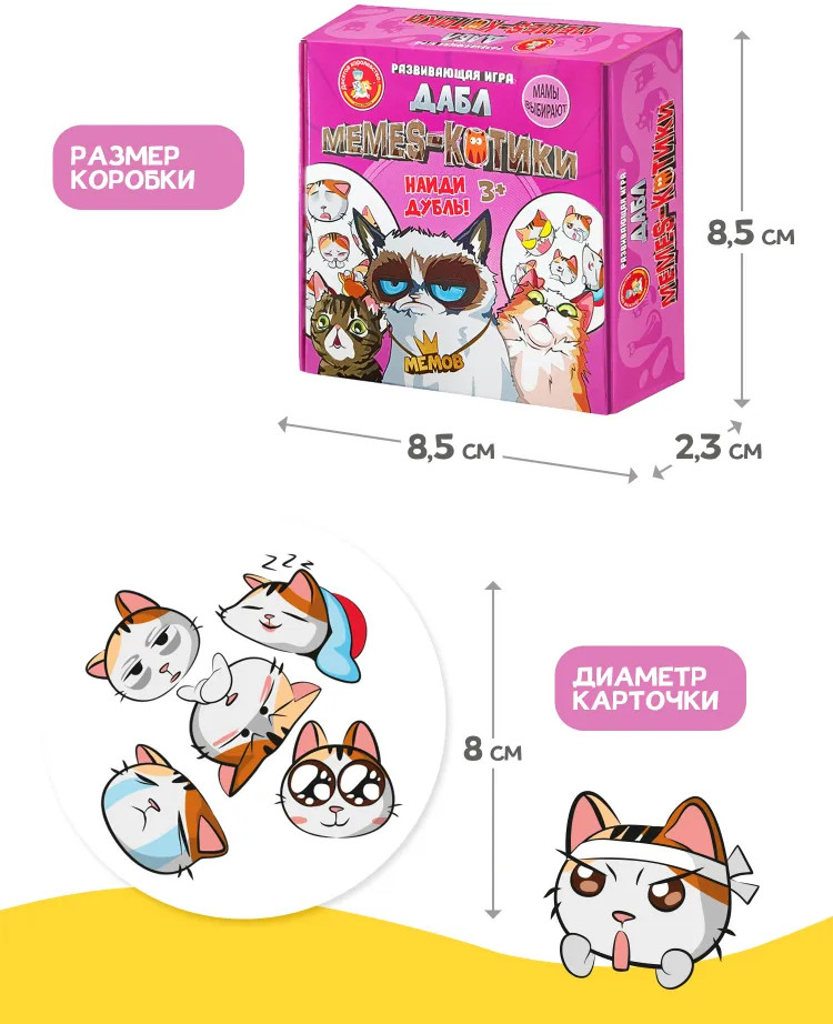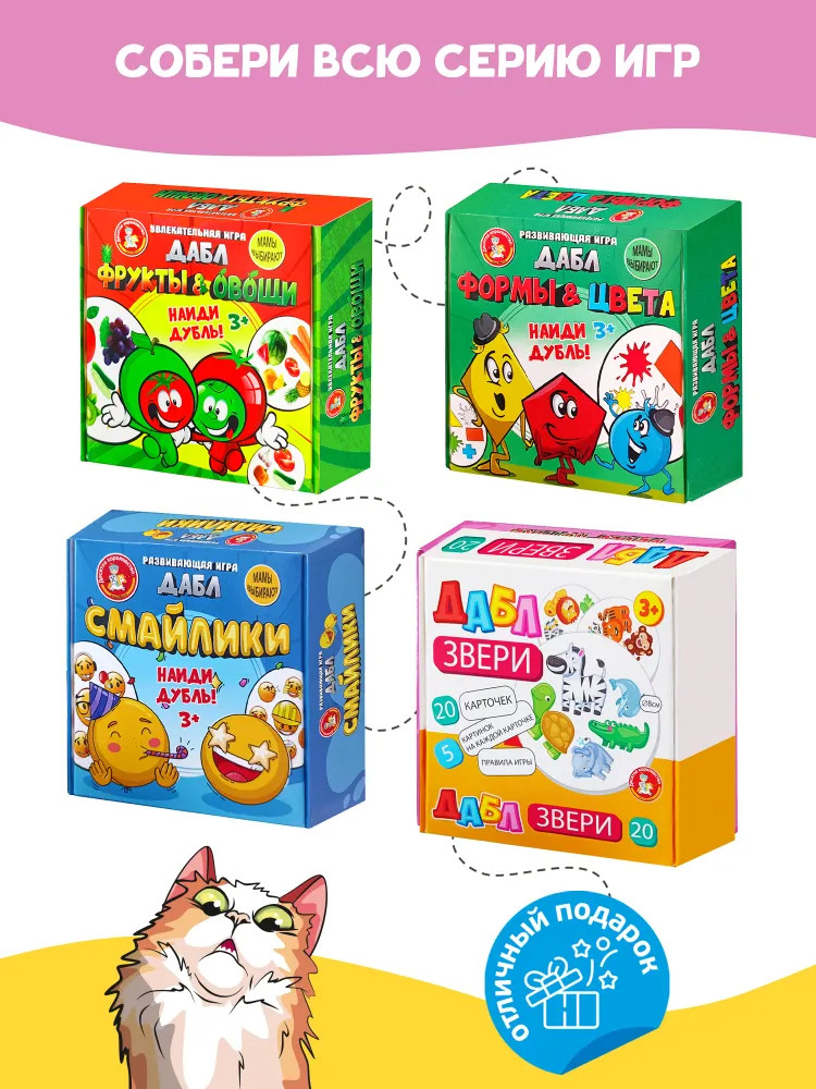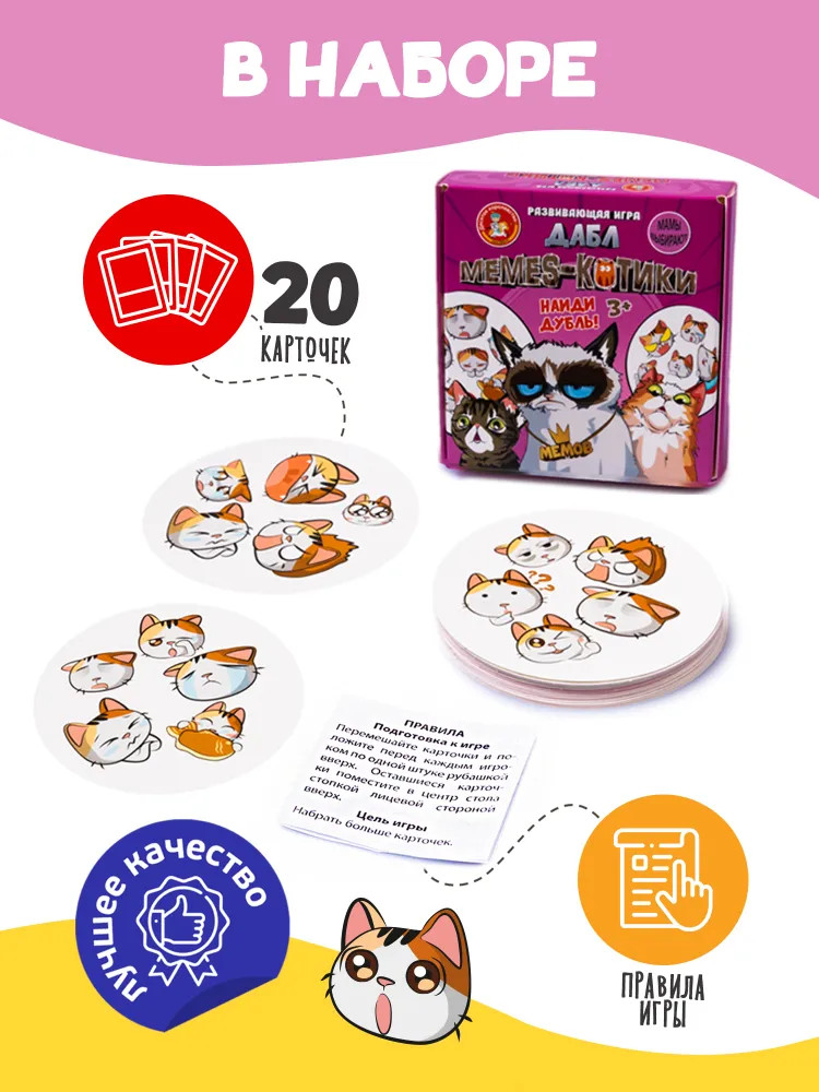 💳 Оплатить за товар можно при получении 🇰🇿 Есть бесплатная доставка по Казахстану от 1 дня 🎁 Копите бонусы с каждой покупки Серия: Дабл Увлекательная игра для детей Дабл «Мемы» — это увлекательная игра для компании на внимательность и быстроту реакции. Удобный формат игры позволяет взять ее с собой в гости, в поездку, положить в сумочку или рюкзак. |