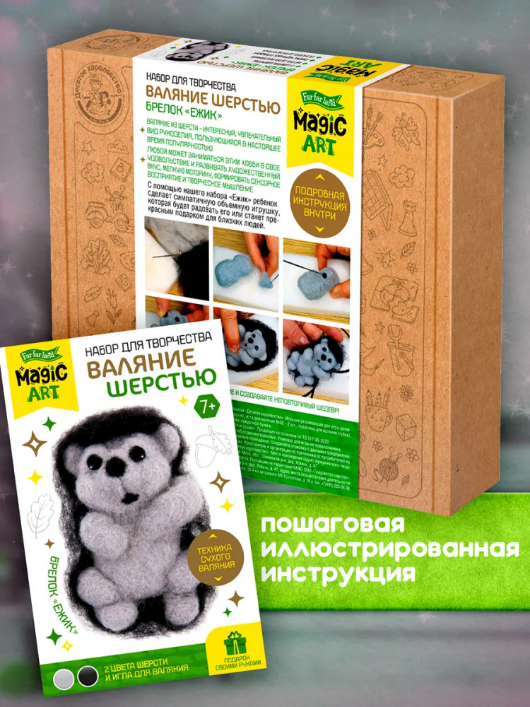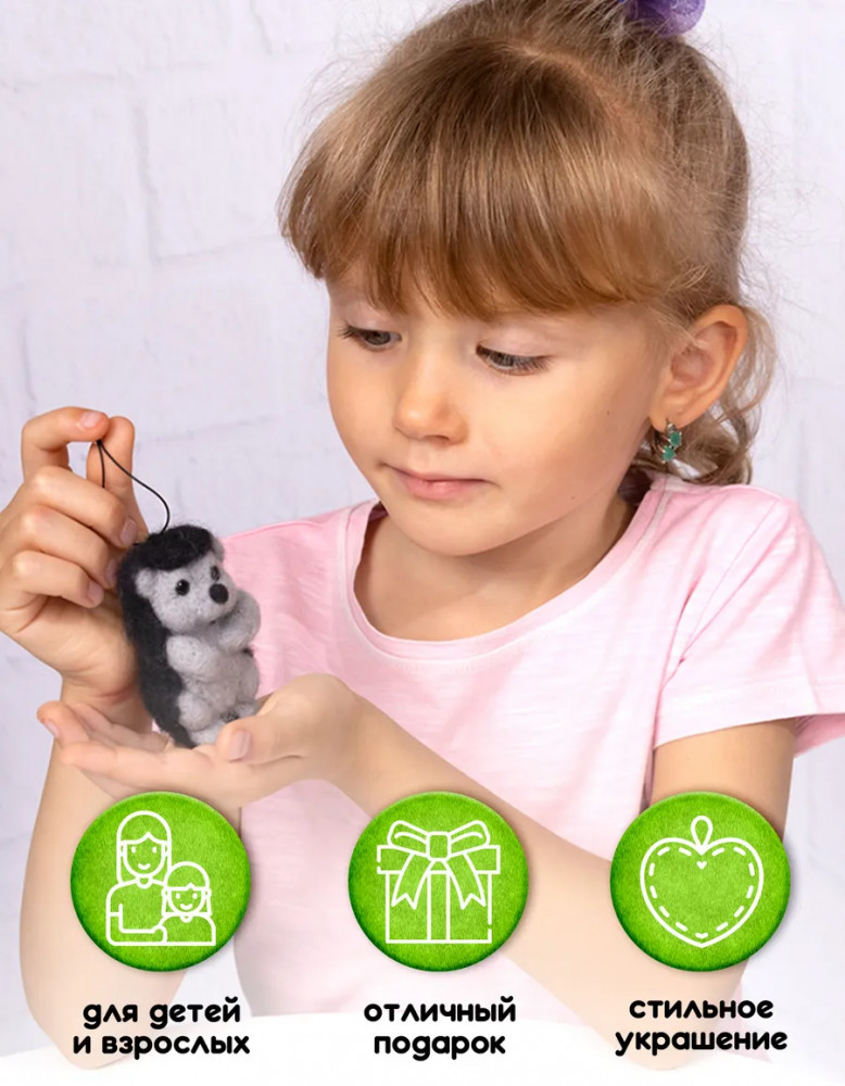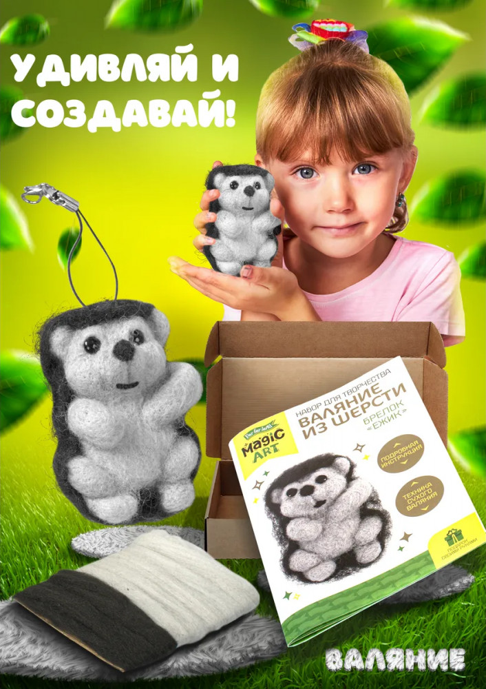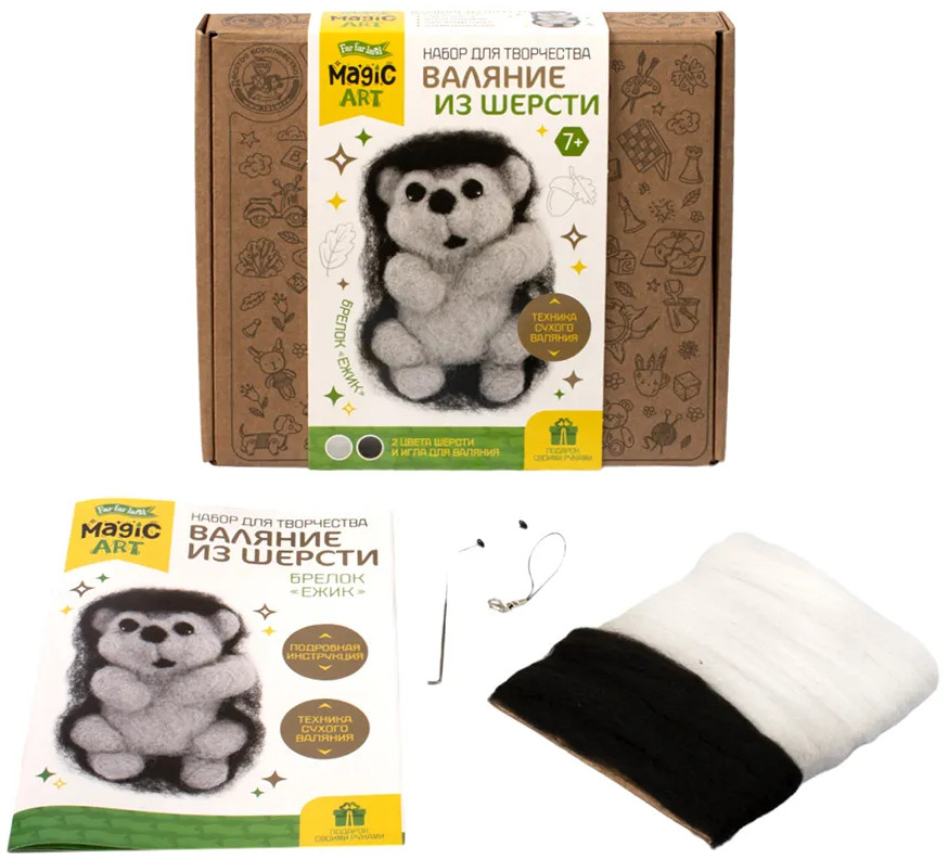 Валяние из шерсти — это интересный и увлекательный вид творчества, пользующийся большой популярностью. Набор для валяния из шерсти «Ёжик» включает все необходимое для создания игрушки или брелока из шерсти. С помощью набора ребенок сделает симпатичную объемную игрушку, которая будет радовать его или станет прекрасным подарком для близких людей. Процесс валяния игрушек развивает художественный вкус, мелкую моторику, формирует сенсорное восприятие и творческое мышление.