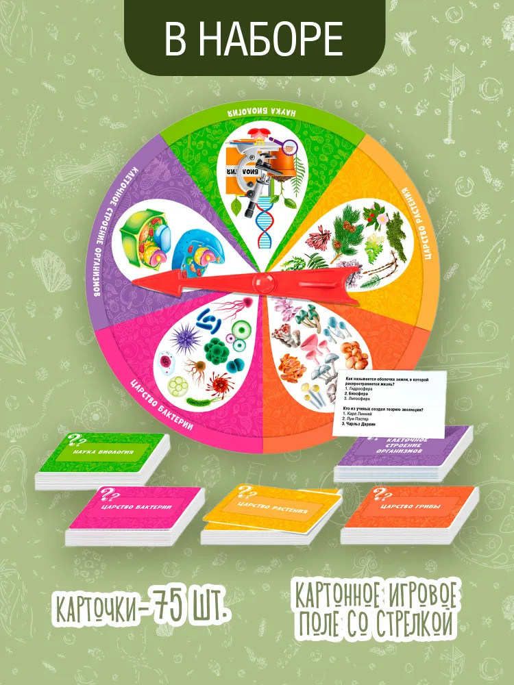 💳 Оплатить за товар можно при получении 🇰🇿 Есть бесплатная доставка по Казахстану от 1 дня 🎁 Копите бонусы с каждой покупки Серия: Викторина С настольной игрой-викториной «Биология» вы сможете проверить уровень знаний в сфере биологии и узнать много нового о клеточном строении организмов, о царстве растений, грибов и бактерий. |