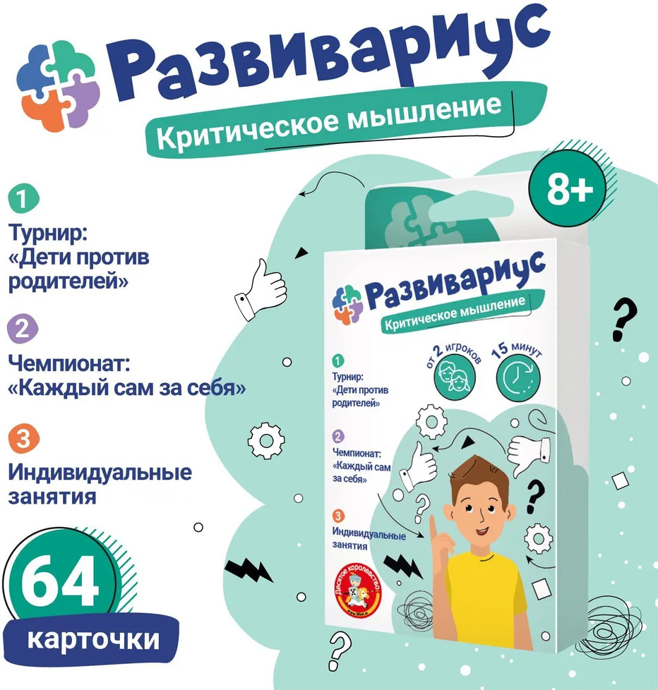 💳 Оплатить за товар можно при получении 🇰🇿 Есть бесплатная доставка по Казахстану от 1 дня 🎁 Копите бонусы с каждой покупки Настольная игра для детей «Развивариус» — это игра, которая развивает способность критически мыслить и оценивать ситуации. Играть можно вдвоем с ребенком и устраивать целые турниры между командами. |