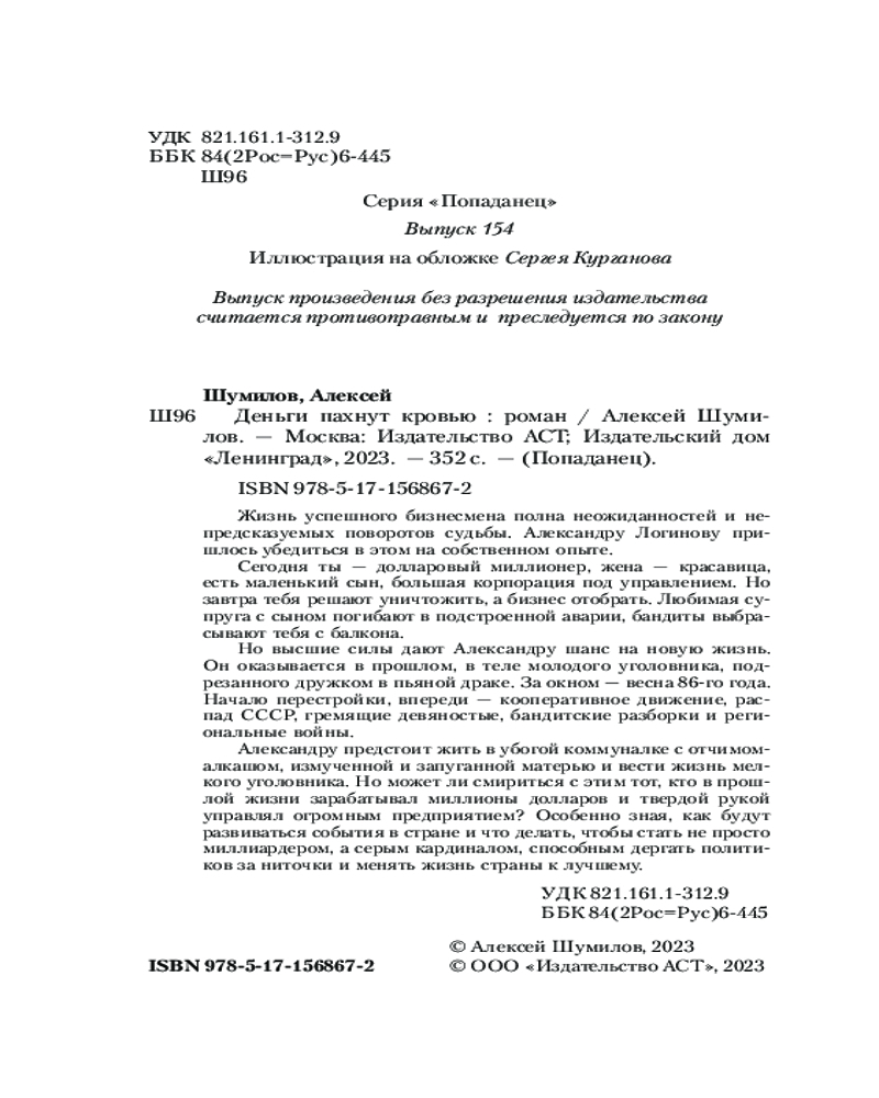 💳 Оплатить за товар можно при получении 🇰🇿 Есть бесплатная доставка по Казахстану от 1 дня 🎁 Копите бонусы с каждой покупки Серия: Попаданец Жизнь успешного бизнесмена полна неожиданностей и непредсказуемых поворотов судьбы. Александру Логинову пришлось убедиться в этом на собственном опыте. Сегодня ты — долларовый миллионер, жена — красавица, есть маленький сын, большая корпорация под управлением. Но завтра тебя решают уничтожить, а бизнес отобрать. Любимая супруга с сыном погибают в подстроенной аварии, бандиты выбрасывают тебя с балкона. Но высшие силы дают Александру шанс на новую жизнь. Он оказывается в прошлом, в теле молодого уголовника, подрезанного дружком в пьяной драке. За окном — весна 86-го года. Начало перестройки, впереди — кооперативное движение, распад СССР, гремящие девяностые, бандитские разборки и региональные войны. |