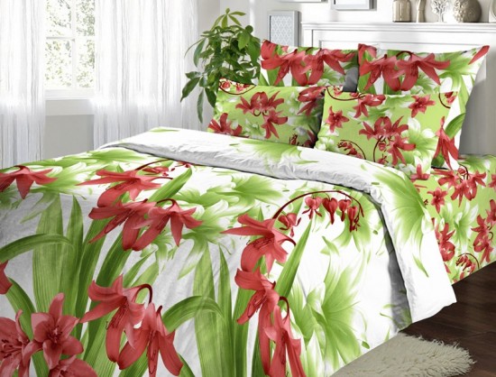 Красиво, ярко. Немного отличается цвет от фото, цветы насыщенно красные. Я сначала расстроилась, потом привыкла. Ткань не линяет.
