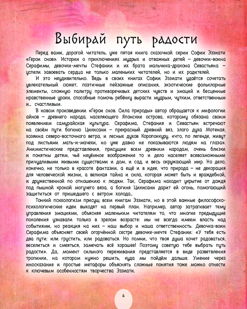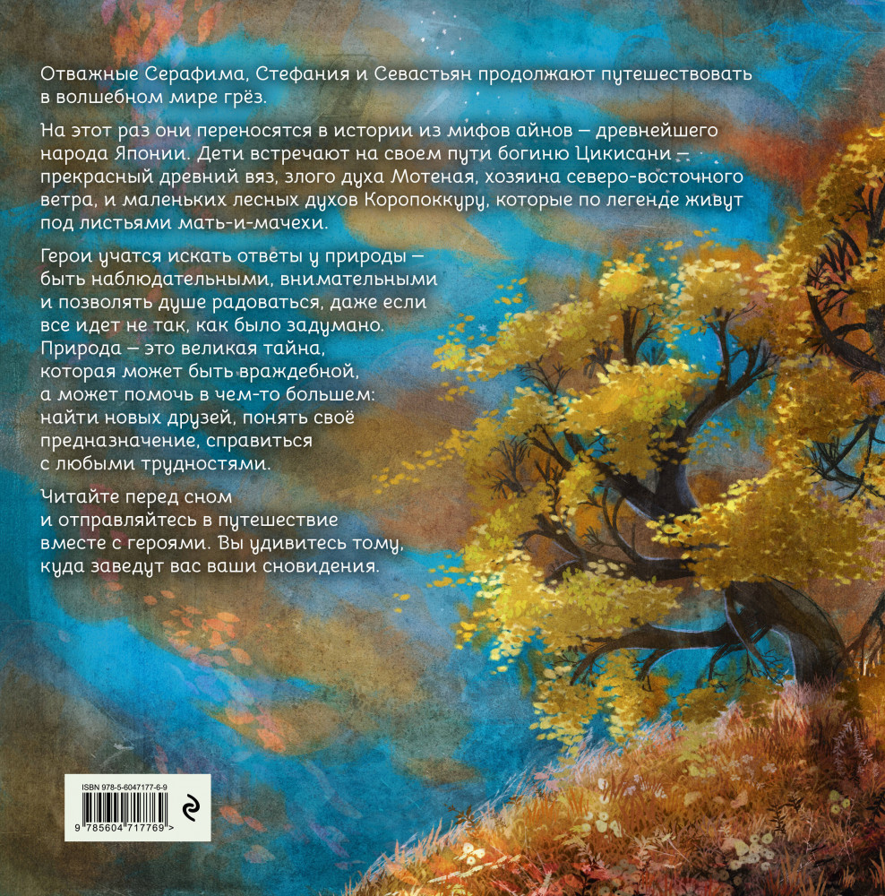 В данный момент этот товар отсутствует в продаже. Возможно, у нас найдется аналогичный или похожий товар здесь. Серия: Герои снов. Приключения в мире сновидений Продолжение приключений девочки-воина, девочки-мечты и мальчика-дракона в волшебном мире грёз. Дети переносятся в истории из мифов айнов — древнейшего народа Японии. Они встречают на своём пути богиню Цикисани — прекрасный древний вяз, злого духа Мотеная, хозяина северо-восточного ветра и маленьких лесных духов Коропоккуру, которые по легенде живут под листьями мать-и-мачехи.