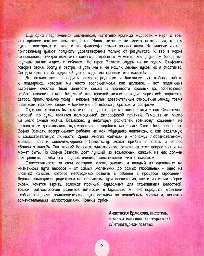 Герои учатся искать ответы у природы — быть наблюдательными, внимательными и позволять душе радоваться, даже если всё идёт не так, как было задумано. Природа — это великая тайна, которая может быть враждебной, а может помочь в чём-то большем: найти новых друзей, понять своё предназначение, справиться с любыми трудностями. Красочная книга с удивительными иллюстрациями Ксении Урбан. Для семейного чтения! |