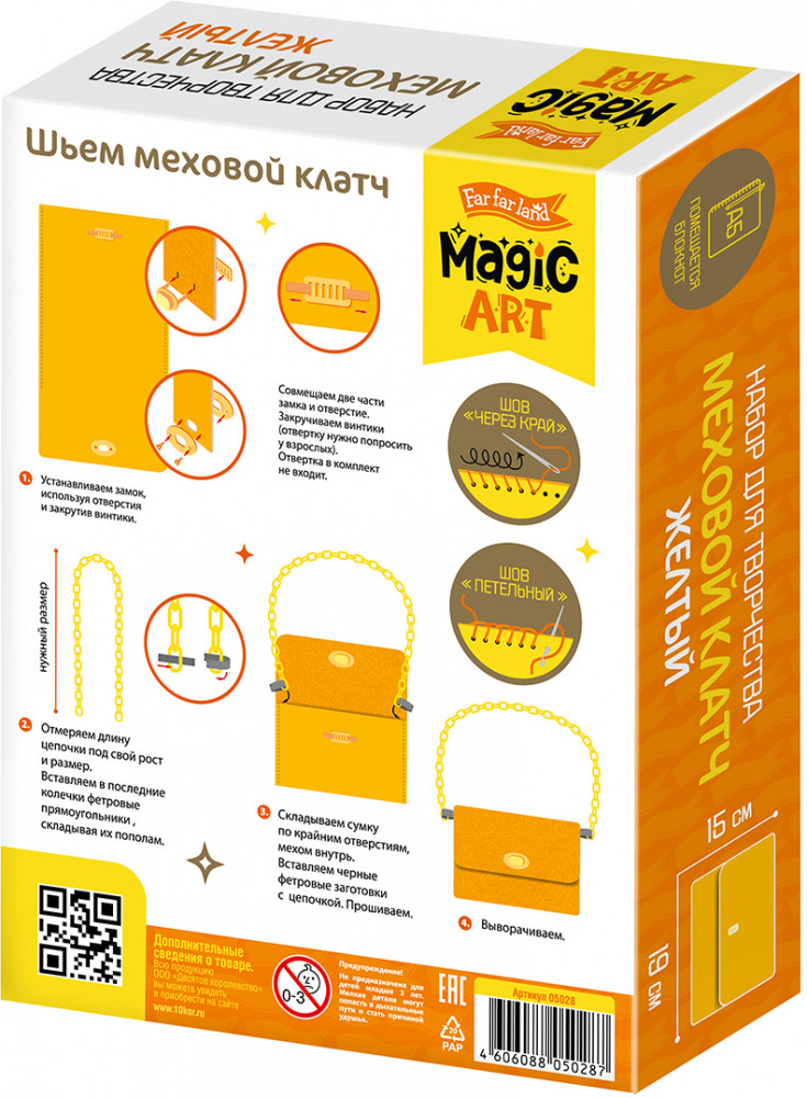 💳 Оплатить за товар можно при получении 🇰🇿 Есть бесплатная доставка по Казахстану от 1 дня 🎁 Копите бонусы с каждой покупки Серия: Magic art Данный набор для создания мехового клатча — отличный подарок для творческого развития ребенка. С его помощью он создаст яркий и необычный аксессуар. Процесс шитья развивает художественный вкус, мелкую моторику, пространственное и творческое мышление. С помощью набора для творчества ребенок сможет сшить необычную сумочку себе или в подарок. |