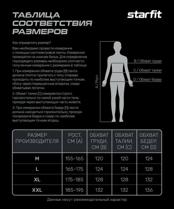 на мой рост 185 см и вес 97 кг хорошо подошёл размер 54/XXL. Надевал поверх обычного спортивного костюма. Материал такой - типа тонкого ПВХ (клеёнки) из которого делают детские надувные круги. Для аккуратной носки. Гораздо слабее обычной болониевой ткани на ветровке. Зацепишь за ветку - порвёт мигом. Для спокойных занятий физкультурой в целях сгонки веса - хорошо (пока примерял уже вспотел). Если кто-то хочет использовать на охоте/рыбалке, на велике/скутере в качестве дождевика - думаю хватит на пару раз, из-за слабого и не предназначенного для этого материала. Представьте себе особо прочный мусорный пакет - вот примерно такая крепость. Но это ведь весосгонный костюм, а для этого он в самый раз. Все технологические выходы (под шею, руки, щиколотки) на резинках-утяжках. Штаны не имеют выраженного "переда/зада", т.е. всё-равно как надевать. При приседании поясная линия штанов имеет тенденцию к сползанию на задницу (побочный эффект такого кроя). При ходьбе и беге - все норм.