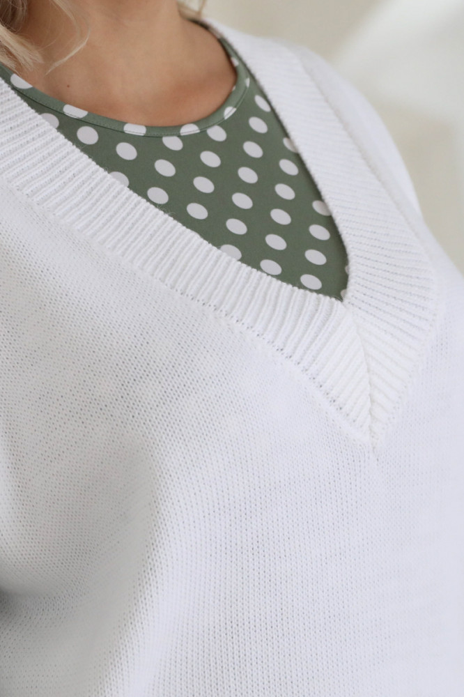 Цвет замечательный, сидит свободно и вязка выполнена со вкусом.