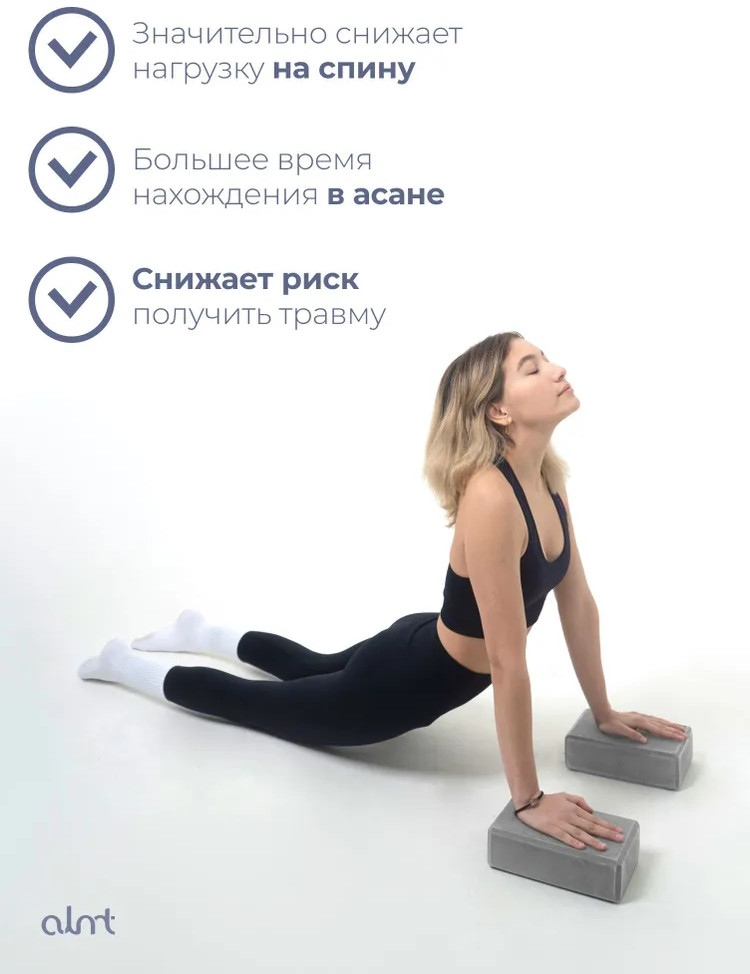 Блок для йоги — отличный помощник новичкам для сохранения равновесия и обеспечения комфортного состояния в практике. Также они будут полезны для выполнения асан и профессионалам. В зависимости от асаны применяются один или несколько блоков. Служат дополнительной опорой для головы, плеч, поясницы, ног или рук. Помогают сохранять баланс и увеличивать время нахождения в позе.