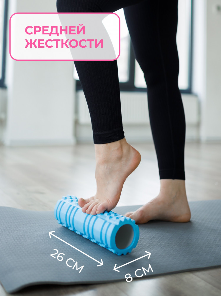 Этот массажор хорошо дополнит ваш спортивный инвентарь и отлично подойдет для занятий спортом как опытным так и для новичков, которые только знакомятся с йога терапией и фитнесом. Ребристая поверхность массажного ролика подготовит ваши мышцы к тренировке или расслабит после нее, особенно если вы занимались интенсивным фитнесом. Ручной ролл подойдет для йога терапии и миофасциальному массажу. Использовать его можно совершенно по разному: как валик для шеи или под спину, массажер для рук, поясницы, ягодиц и икроножных мышц.