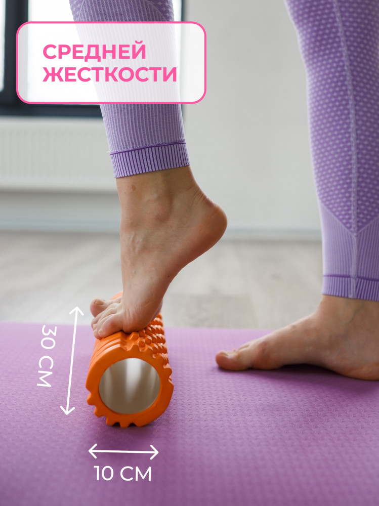 Цилиндр массажный полностью выполнен из прочного и хорошо амортизирующего эва материала. EVA (ЕВА) пена крепкая и спокойно выдерживает человека, весом до 120 кг. Яркий цвет отлично впишется в любой дизайн квартиры или спортивного зала и дополнит его, как современный и стильный аксессуар. Длина пенного ролла 30 см, диаметр 10 см. Он абсолютно не проминается под весом тела, не имеет запаха, износостойкий и безопасный. Валик ортопедический универсальный аксессуар и подходит как взрослым, так и детям.