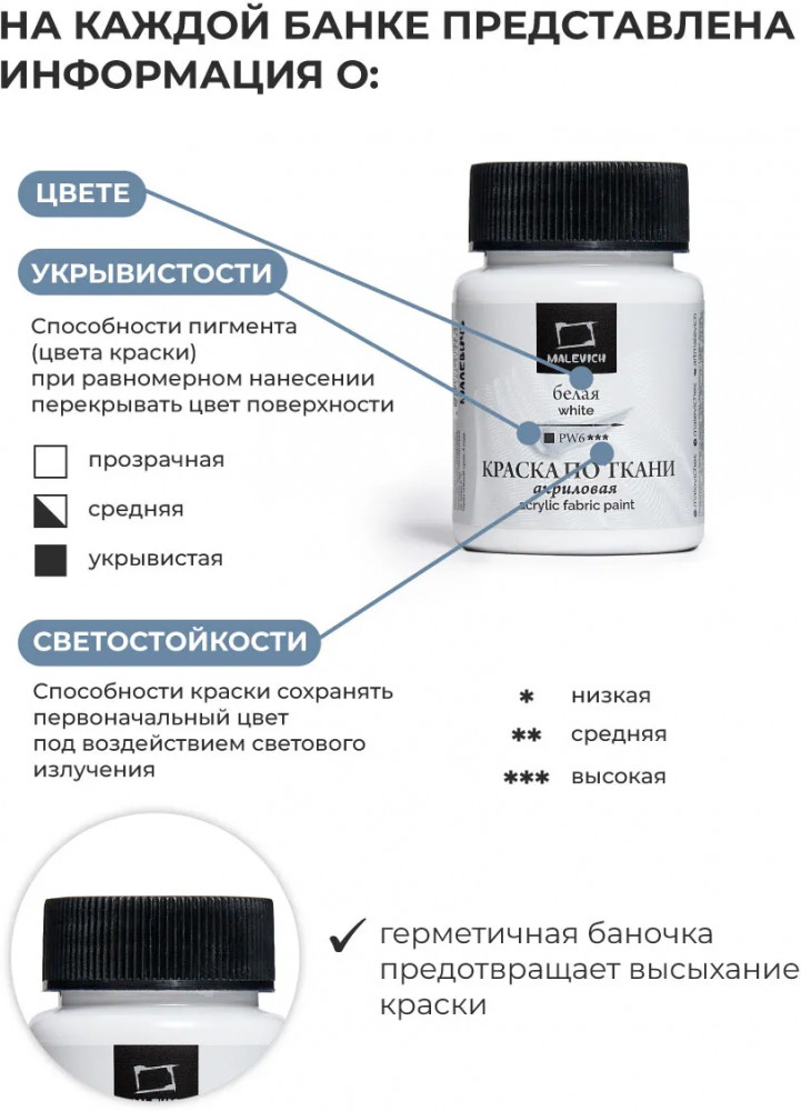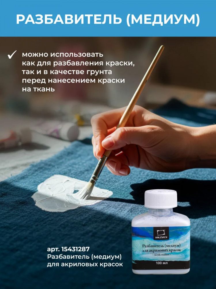 МалевичЪ Краска акриловая по ткани, небесно-голубая
