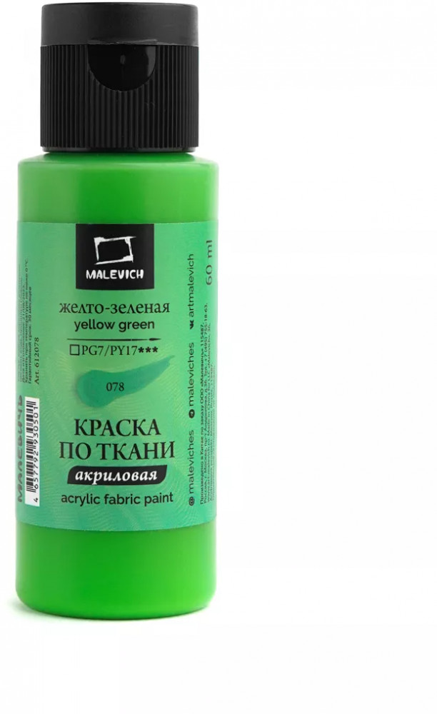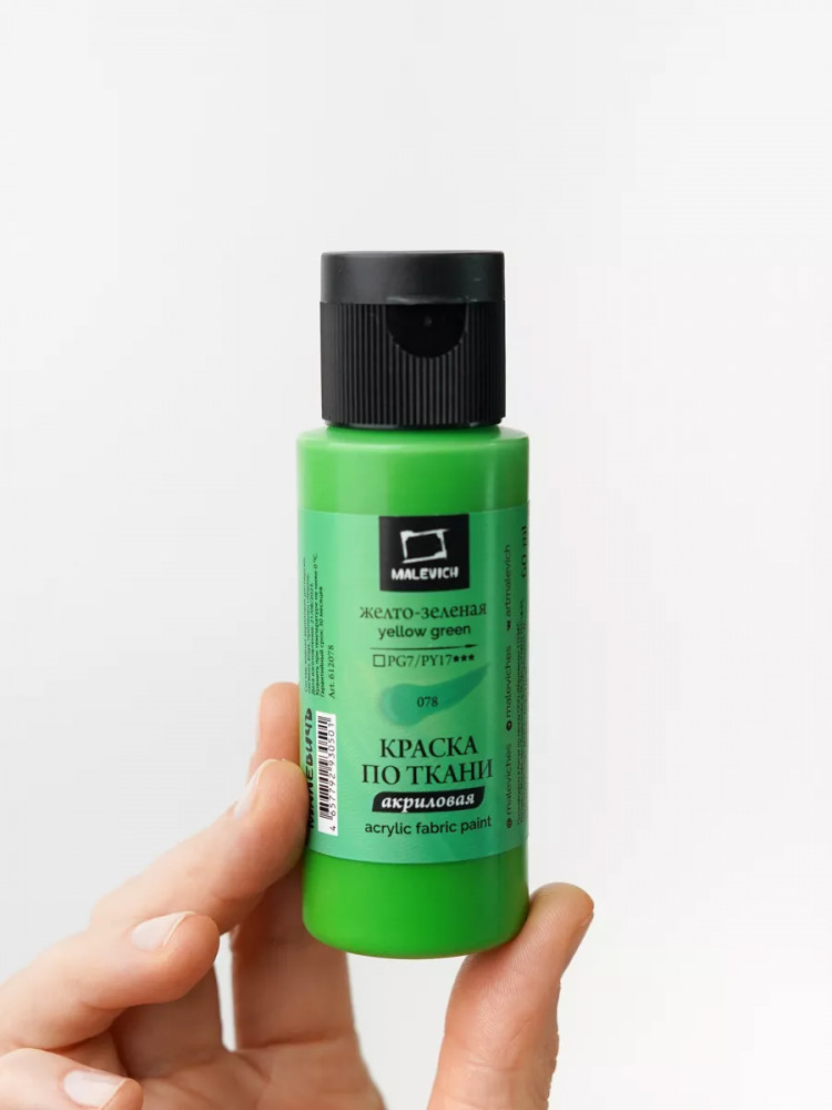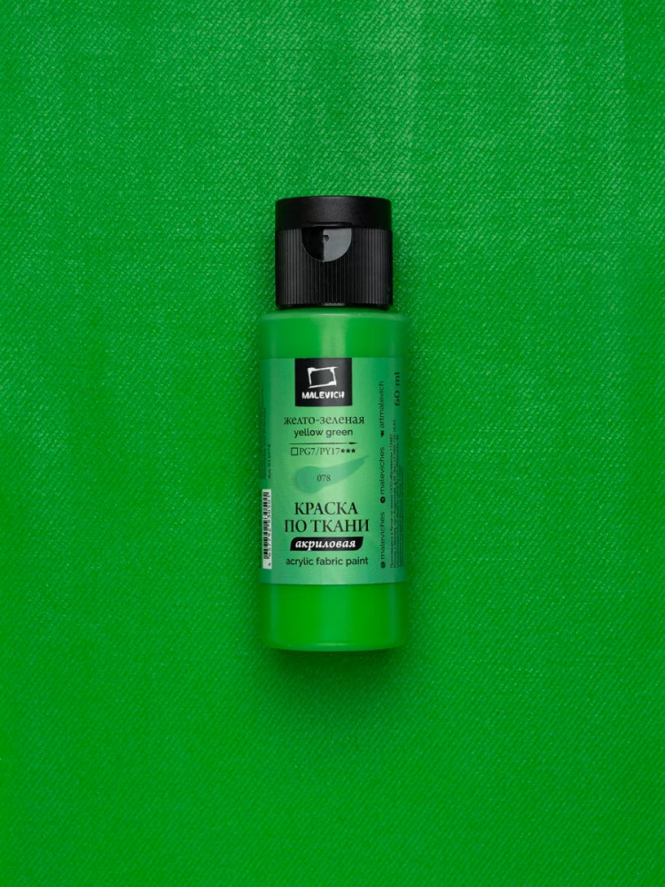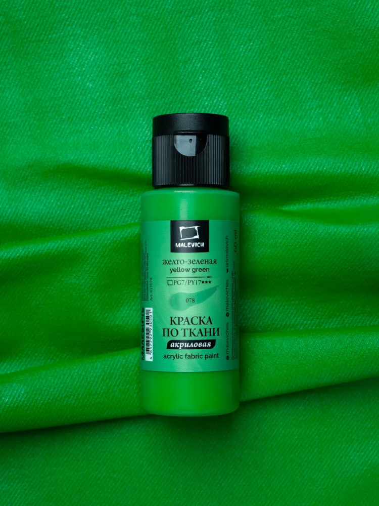 МалевичЪ Краска акриловая по ткани, жёлто-зелёная