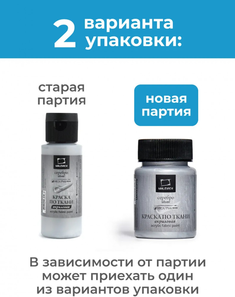 МалевичЪ Краска акриловая по ткани, серебро