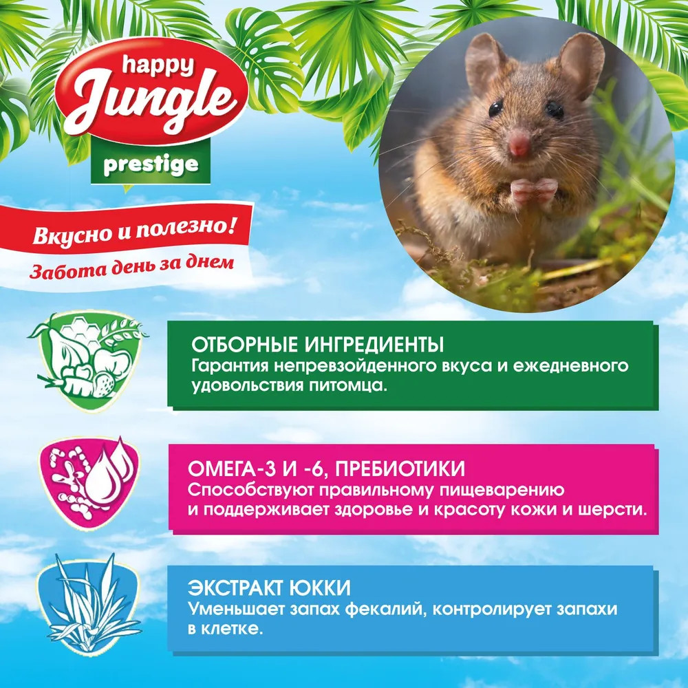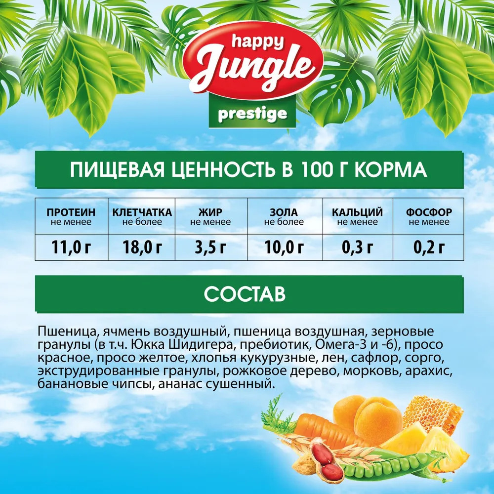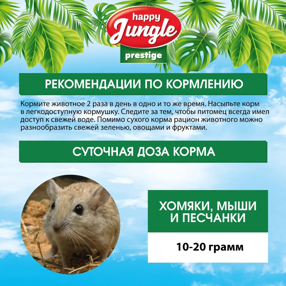 Happy Jungle Корм для хомяков, мышей и песчанокВ данный момент этот товар отсутствует в продаже. Возможно, у нас найдется аналогичный или похожий товар здесь. Серия: Prestige Условия хранения товара: температурный режим от -10 до +25°С. |