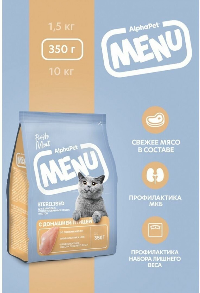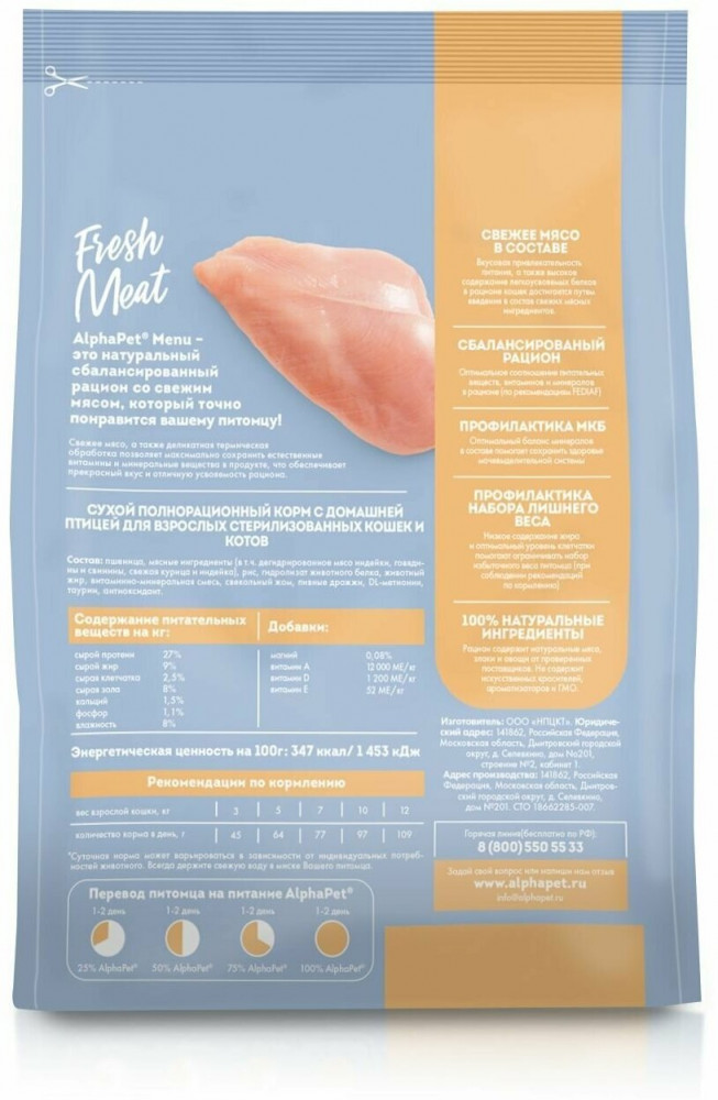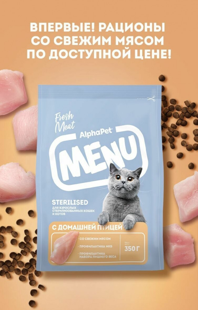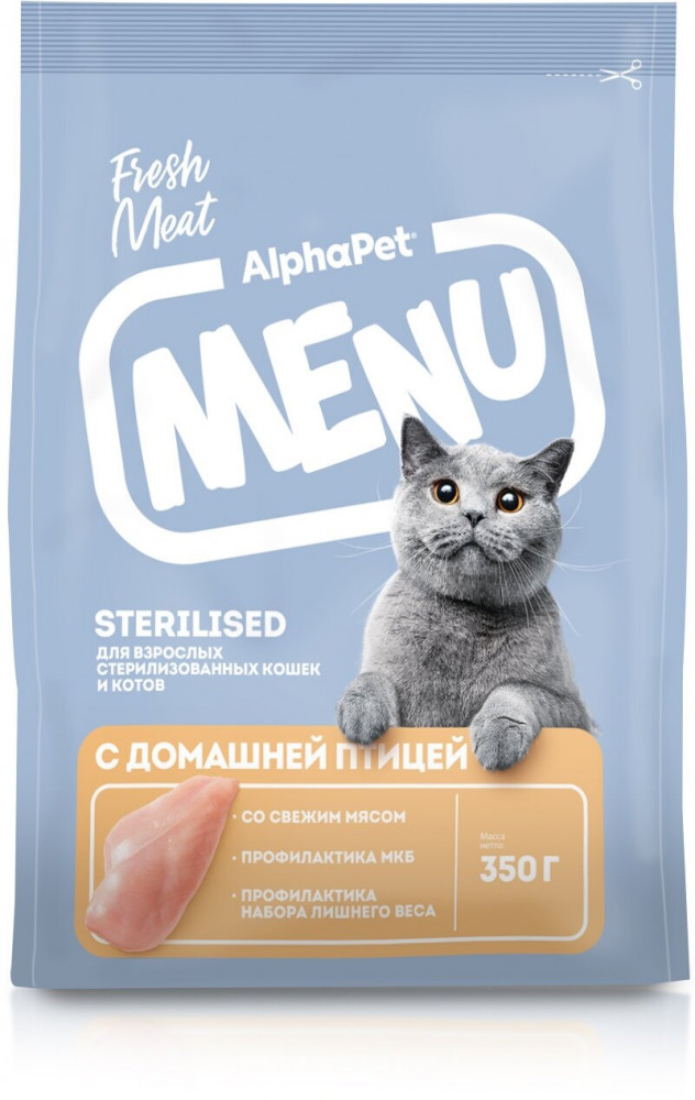 AlphaPet Корм для стерилизованных кошек и котов с домашней птицей