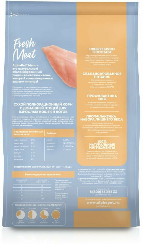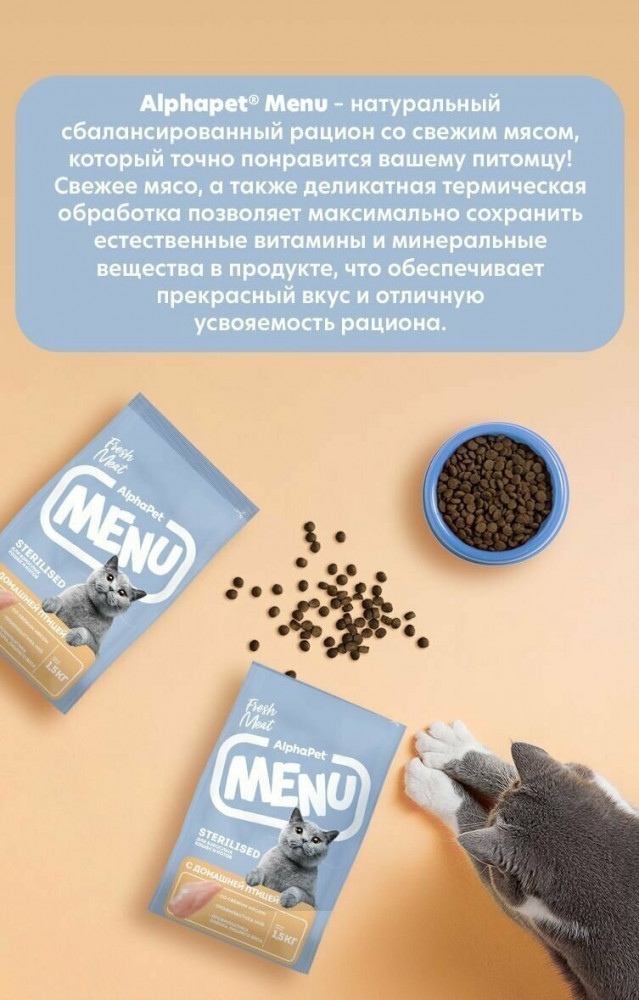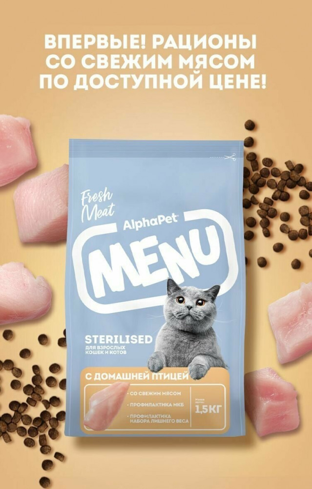 AlphaPet Корм для стерилизованных кошек и котов с домашней птицей