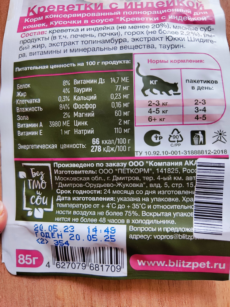 Отзывы «Консервы для кошек «Креветки с индейкой в соусе»»