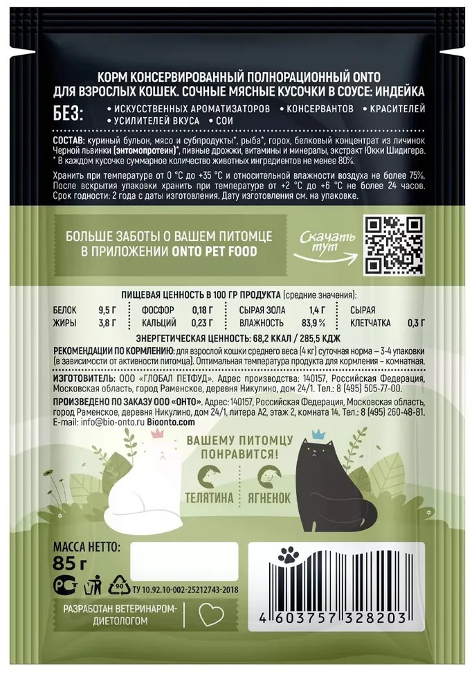 Onto Корм для кошек с энтомопротеином «Индейка»