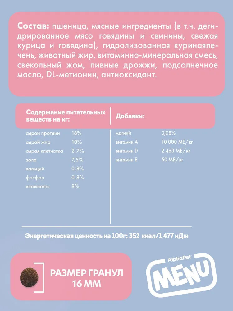 AlphaPet Корм для взрослых собак всех пород с говядиной
