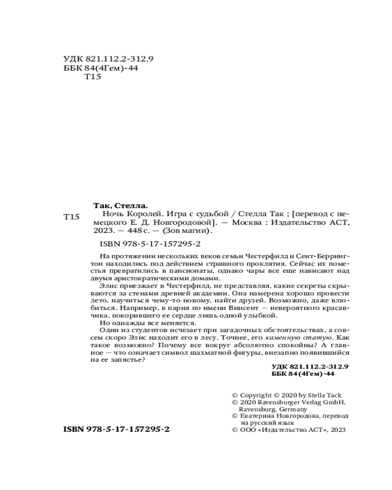 Один из студентов исчезает при загадочных обстоятельствах, а совсем скоро Элис находит его в лесу. Точнее, его каменную статую. Как такое возможно? Почему все вокруг абсолютно спокойны? А главное — что означает символ шахматной фигуры, внезапно появившийся на ее запястье?