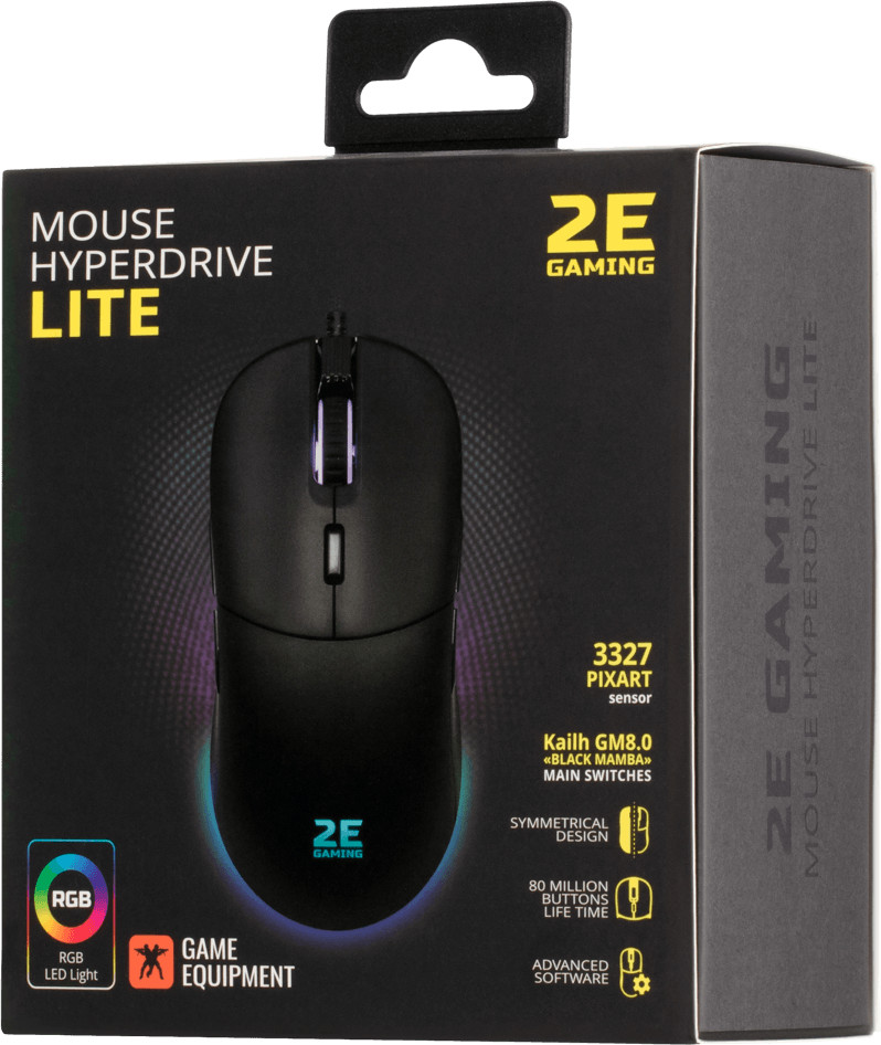 Одним из достоинств модели 2E Gaming HyperDrive Lite является самый продуктивный точный сенсор PixArt 3327 с 6-ю настраиваемыми значениями уровня чувствительности от 200 до 12 000 DPI по двум осям, что обеспечивает четкое позиционирование на любой поверхности. Частоту опроса мышки легко настроить на четыре шага: 125-250-500-1000 Гц, благодаря чему задержка почти не будет чувствоваться, а мышь станет виртуальной рукой игрока.